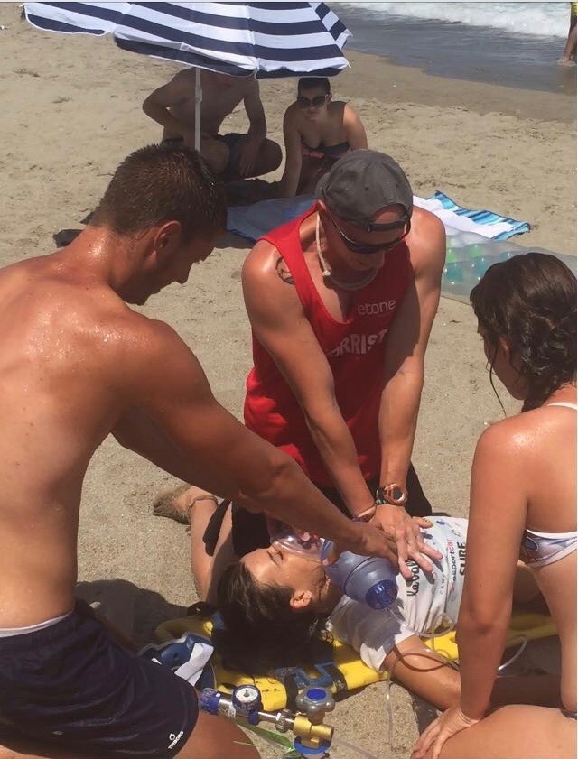 Desde el momento de su avistamiento, dos socorristas acuden inmediatamente a rescatarla del agua y en 5 minutos, ya en tierra, el coordinador comienza con las maniobras de reanimación cardio-pulmonar.