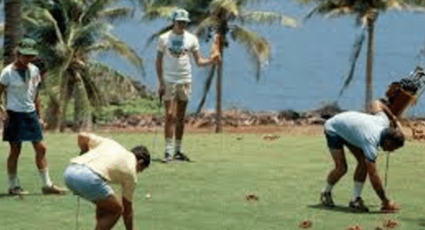 También se llevan las pelotas de golf; la regla es que los jugadores dejan que el cangrejo se quede con la pelota si va en la dirección correcta. Los golfistas vienen a la isla solo por la experiencia, y se les aconseja que revisen el hoyo antes de recuperar su pelota o que cuenten sus dedos después.